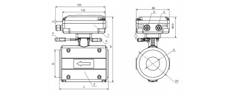 Вид расходомера Взлет ЭР (Лайт М) исполнений ЭРСВ-ХХ0Л с проточной частью, футерованной фторопластом и металлическим кожухом:
