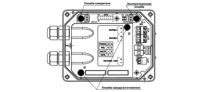 Подключение внешних приборов к расходомеру производится с помощью кабельных линий связи. Ввод кабелей в ЭБ осуществляется через герметизированные вводы, рассчитанные на подключение кабелей или гофрошлангов.