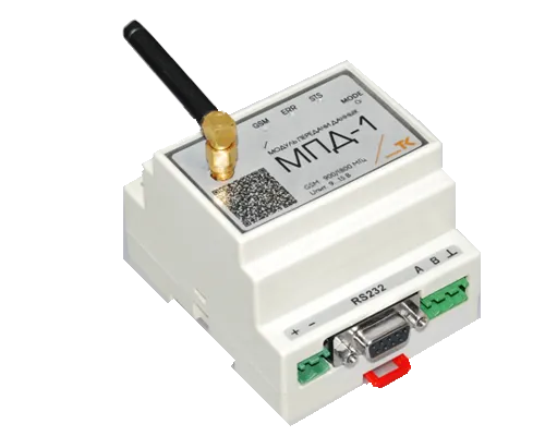 Модуль передачи данных МПД-1 предназначен для коммуникации с приборами учёта и другим оборудованием, оснащённым интерфейсами RS-232 и RS-485 по сетям GPRS (Интернет и корпоративные сети), а также оповещения о нештатных ситуациях и управления входами и выходами. Прибор работает с двумя сим-картами.