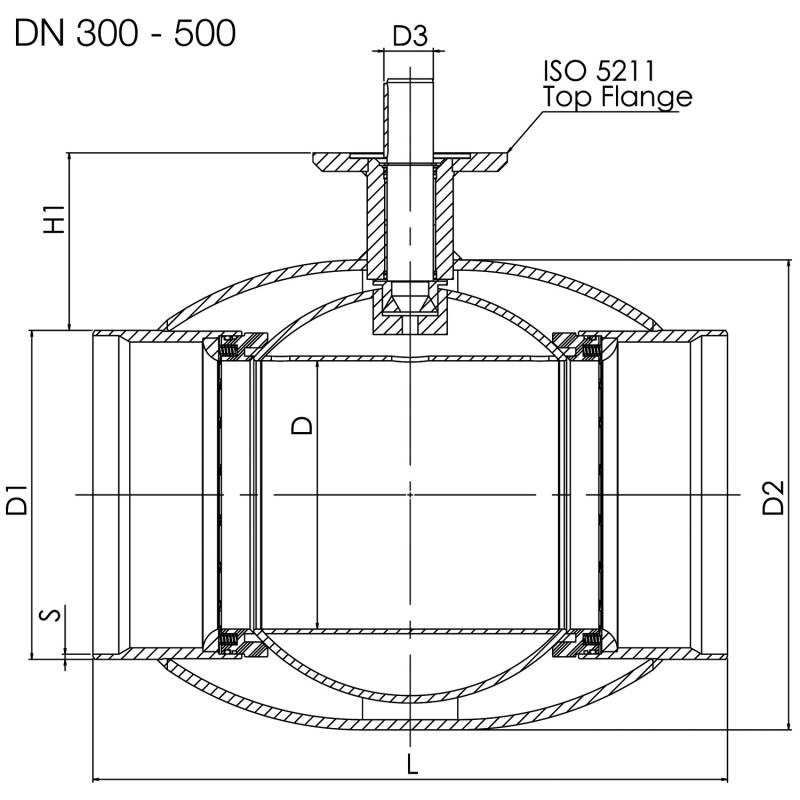 | Шар: | DN 10–600 Нержавеющая сталь, X5CrNi18-10 (1.4301) |